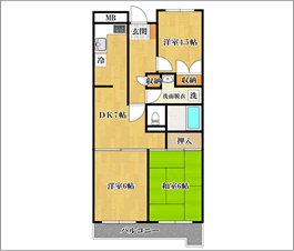 ※間取りの一例です。1DK、2DK、3DKのお部屋がこざいます。
